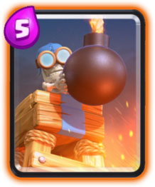 上榜理由:炸弹塔这张卡牌在最初的持续时间是60秒,在前几次的改版后变成了40秒,之后就一直沉淀了起来,虽然这张卡牌有着不错的范围攻击,但是由于这张卡的费用较高,并且伤害也低,所以在防守方面很难抵挡灵活的矿工以及巨人的压制,只有在对抗野猪时能用,但是加农炮防守野猪则是更加优异,所以很少使用。