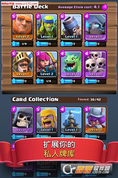 赢取宝箱来解锁奖励、收集强大的全新卡牌并升级已有卡牌