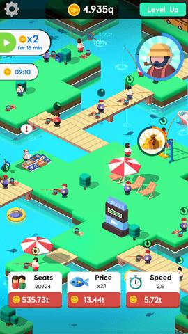 放置渔庄(idle fishing)游戏是一款放置类模拟经营idle手游,你将扮演一名渔场老板,经营一家渔庄吸引客人前来钓鱼,不断发展渔庄的生态,培养更多的鱼类满足不同顾客的需求,然后赚更多的金币!