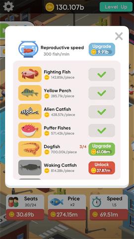 4、操作非常的简单,你只用等着获得金币去升级自己的鱼塘就可以了。