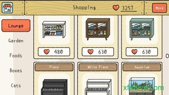 3、超多的家具和时装道具等你用红色爱心购买,让这些物品有秩序的摆放。