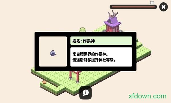 驱魔人的诅咒之神。提高神社的水平并击退。