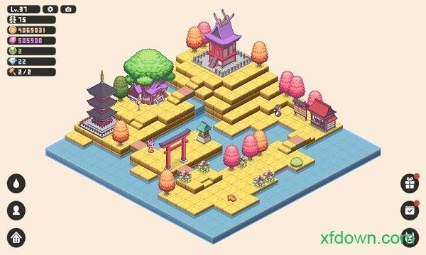 一款采用了箱庭建造模式制作的模拟经营类游戏,玩家能够在沙箱世界中来建造出自己的神社,并且可以设计各种各样的装饰品来装饰你的神社,根据每一个地块来配置不同的建筑。