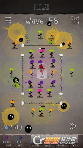 FLOWAR游戏手机版是一款塔防游戏,我们的任务就是保护玫瑰花不受到伤害,乍一看有点像植物大战僵尸,FLOWAR游戏是111%的塔防新作,利用不同颜色的花来表示不同类型的“塔”,守护花园正中的一朵玫瑰,与奇奇怪怪的黑色毛线团怪物战斗;朋友们一起来做护花使者吧!