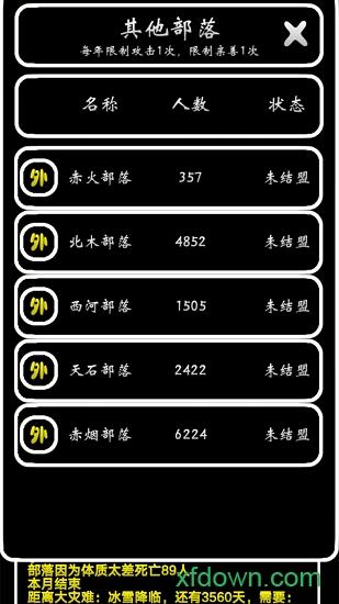 3、观察部落的战斗力,在纯粹的冷兵器时代,去吞噬其它部落,建立新的文明。