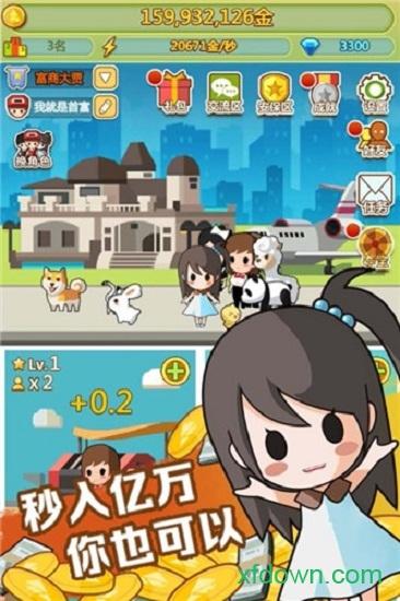 模拟经营放置类的养成游戏,这款游戏能给你感受世界首富是一种什么样的感觉。融入了大量的养成经营元素,多元化的玩法,玩家将从一个屌丝开始,开始你的致富之旅,真实模拟白手起家辛苦阶段,投资、建立、买卖、房地产等各行业都不放过,要做就做大,着手你的富翁计划!