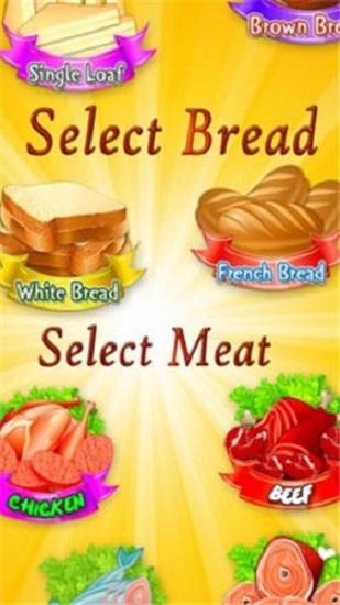 1、玩家可以根据自己的喜好用游戏提供的材料制作心仪的三明治。