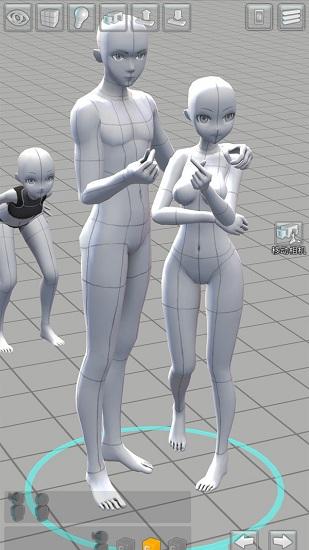 -具有“骨架”,点击骨架上某按钮,根据圆形的轨迹,进行“旋转”,依此调整人物模型的肢体动作。