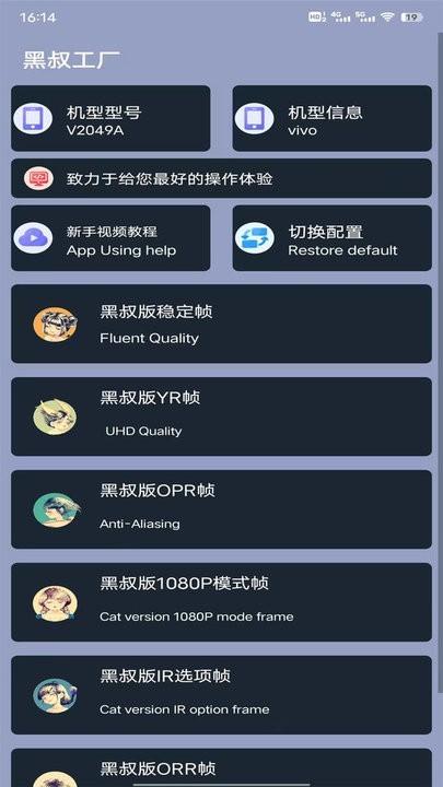 黑叔工厂app是一款实用的游戏辅助工具,一键进行画质帧数的变化和修改,超全面化的数据信息内容操作起来更方便,多元化的功能根据需求来进行优化处理,让你在游戏过程中享受精彩的游戏乐趣,有需要的快来下载吧!