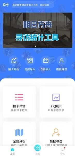 专门针对于明日方舟玩家们打造的统计工具手机版本,能够实时查看游戏数据,统计抽卡概率,还能够一键导入自己的保底数据,还原最真实抽卡场景,辅助大家进行更全面的游戏体验!