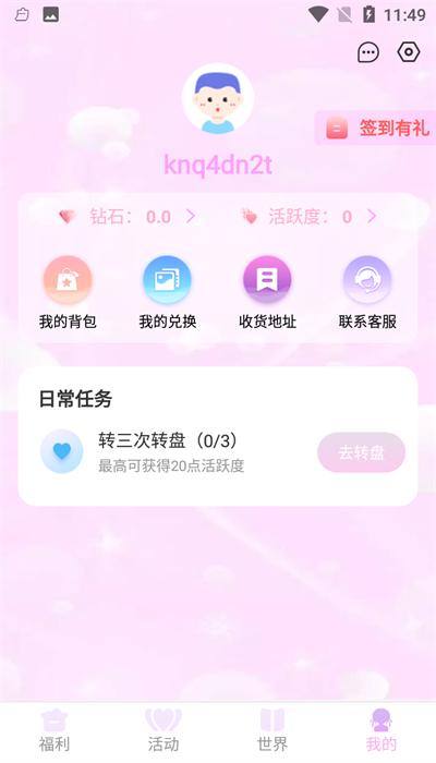 用户可以在这里领取各种丰富的游戏资源,只要签到和完成一些小任务就能够轻松的进行选择,还可以换到游戏中比较好的皮肤,十分的好用