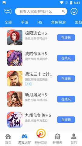 2、提供手机游戏下载、h5游戏在线玩的平台型应用;