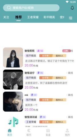 5、里面的功能很多,有各种游戏的盲盒、语音室、热门电台、陪玩系统。