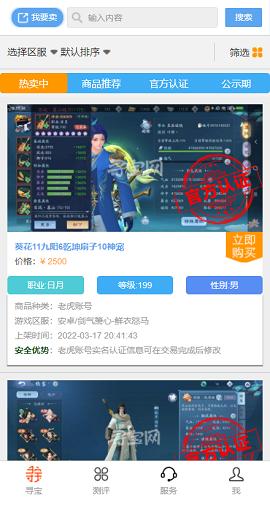 诛仙寻宝手游交易平台是款专为广大诛仙游戏玩家推出的正规游戏平台,在这里,用户可以放心的去买卖金币、装备、账号等等,让用户能够享受到更加自由的游戏体验。而且平台还拥有24小时在线客服,强大的售后服务能让你用的更加放心。