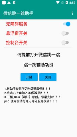 微信跳一跳助手2022新版本是款非常稳定的一款跳一跳辅助神器,软件支持悬浮窗口的使用,使用起来更加舒适且轻松。而且平台无需ROOT权限,绿色安全,绝对不会被系统检测,让用户用的放心,如果你也想要让自己的跳一跳远超他人,一定要来试试微信跳一跳助手APP哦!