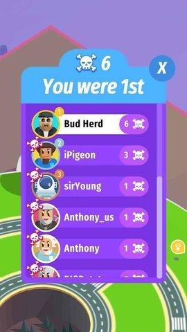 1、采用卡通风格为大家呈现的竞速吃鸡类手游,游戏将为大家呈现了创意十足的休闲玩法;