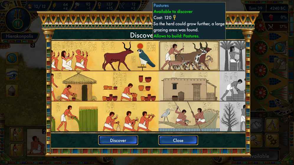 在《史前埃及》中,有48个基于历史的技术与文化成就等您探索!相关的有趣描述可以带您领略以埃及文明为例的人类技术革命过程。