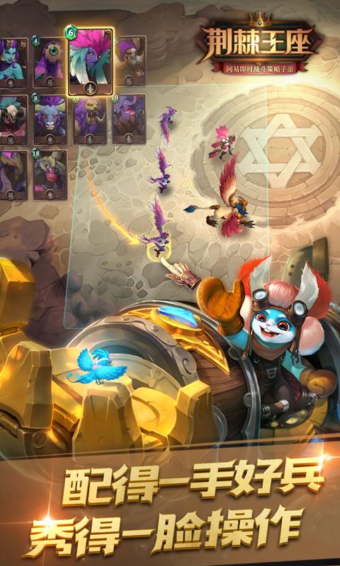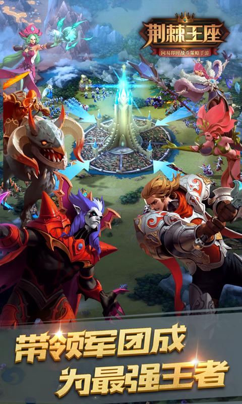 2017年精品巨献,网易即时战斗策略手游《荆棘王座》精彩来袭!《荆棘王座》是一款西方魔幻题材的3D策略手游。游戏中,您将化身为代表荣誉与正义的传奇领主,坐拥华美城池,驰骋宏大壮丽大地图,拓荒养成!您还可以选择加入军团,与志同道合的伙伴一起,为了荣耀使命,展开一场场跨越种族的热血战争,谱写魔幻史诗篇章!您既能洞悉兵种相克之理,提前布阵,巧夺先机;也能派遣得力英雄即时操作,爽快击杀。探索与养成共举,策略与激战并存。