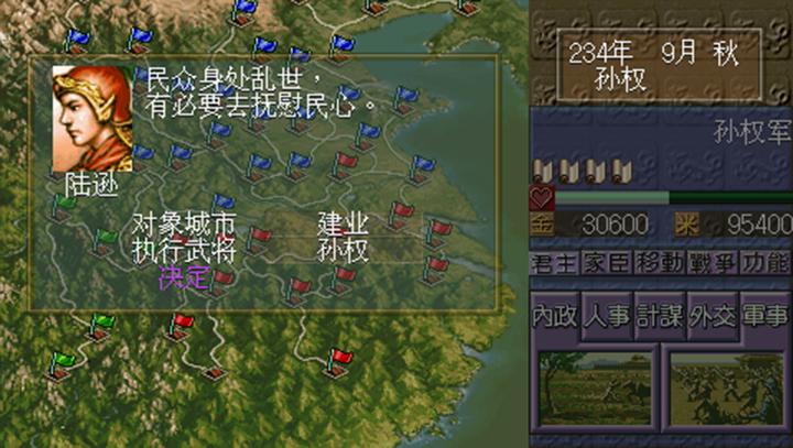 打仗、人才赏赐、结盟和计谋都需要钱财,打仗更需要粮草,因此用政治高的武将治理好内政,越早越好。