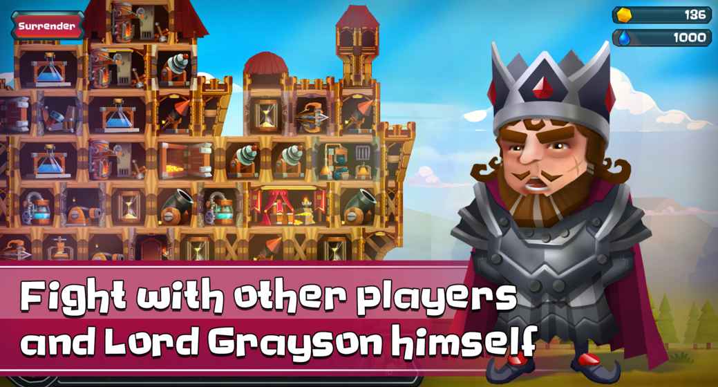 你的城堡已被格雷森主攻击,你已经成功地为自己辩护,但现在你需要从你的敌人手中夺回您的土地!城堡复仇是具有现实的基于物理学的城堡毁灭的策略和动作游戏的独特的组合!《城堡大作战 Castle Revenge》是一款超级好玩的策略类手游,现在你不仅要培养萌萌哒士兵,还要加入火爆的对决,守护自己的城堡,成为真正的英雄!