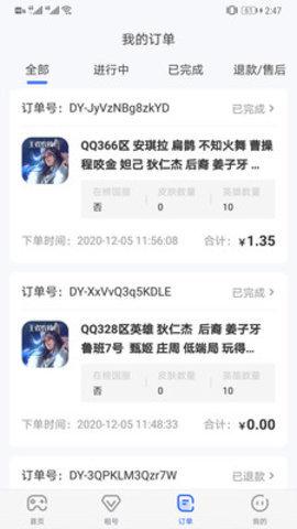 4.进入订单版块,查看自己的各个订单信息,快速申请退款和售后服务