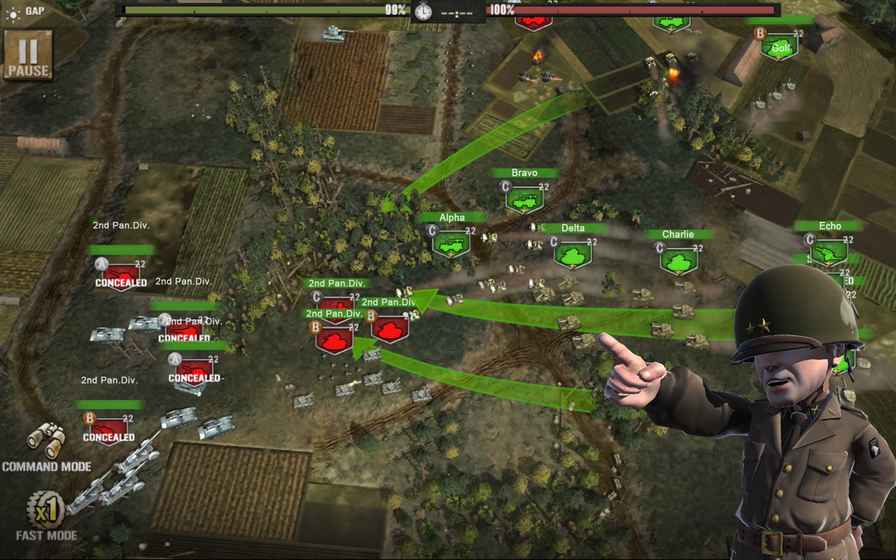 除了攻击敌人的正面,你可以在他们的侧翼和后方发动致命一击,以及执行战术,如吸引敌人的火力和攻击他们的主要指挥中心。