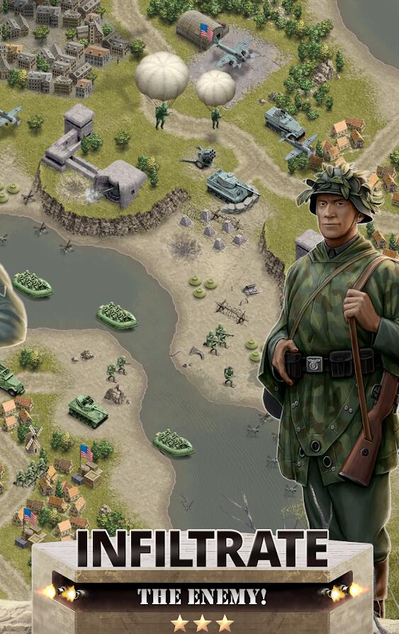 掌握像伞兵和轰炸机中队这样的特殊单位!从上方惊讶你的对手并征服敌方领土的战略要点;