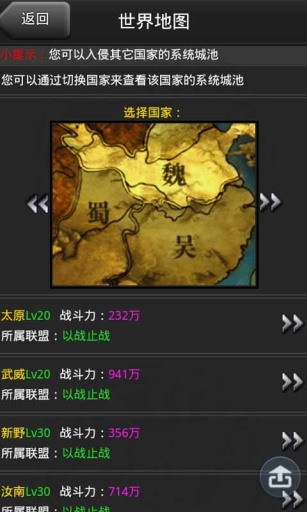 2012年顶级策略游戏,上线首月用户量已突破百万人!豪华的游戏场景再现三国帝王的辉煌,流畅的操作界面,让玩家体验前所未有的掌上点兵,轻松作战的游戏乐趣。