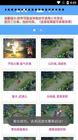 王者美化APP免费版是款专为广大王者荣耀玩家推出的游戏辅助工具,有了它,你可以自由的切换各类皮肤,完全不需要花一分钱。而且游戏运行稳定,绝对不会有安全问题,如果你也想要感受它的强大,那就快来下载体验吧!