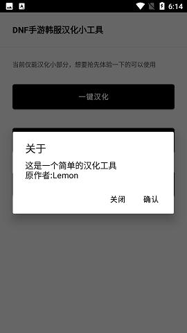 DNF汉化工具app官方版是一款专为最近在玩DNF韩服手游的小伙伴准备的游戏工具。这款软件能够实现一键汉化,让你体验汉化游戏的快感,这个是游戏UP主自制的游戏辅助工具,所以汉化的部分是有限的,请务必注意。如果出现乱码可以在软件中选择卸载汉化补丁。