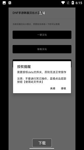 DNF韩服手游汉化工具APP是款专为当下非常热门的DNF韩服手游打造的中文汉化工具,其上手十分简单,仅需一键就可以轻松的进行汉化,让玩家在游戏时再也不会感到语言不通的烦恼。而且软件稳定性非常强,对游戏进行汉化后不会有任何的影响。