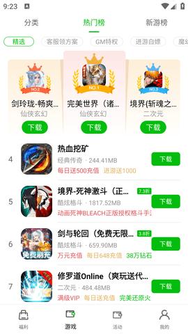 这款游戏盒子软件会给新用户送首充,保证用户能够随心所欲的畅玩游戏,另外软件里面还有大量免费的游戏礼包,用户只需要每天签到就能够直接领取,同时软件还有各种游戏排行榜,帮助用户防线更多好玩的游戏,各种福利活动用户可以随时参加。