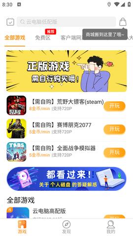 云电脑高配/低配版,配备超大个人专属磁盘,保存你的游戏、存档、辅助工具,实现你的游戏自由。平台还提供多款游戏内容、游戏辅助、加速器等供你选择。