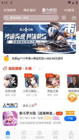 2、折扣游戏:自动折扣,3折起充,即冲即到。