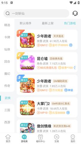 这款软件里游戏资源更新速度极快,而且操作简单,用户只需一键点击就能够轻松玩耍,每一款游戏都有非常丰富的游戏信息,游戏内容也是极为精彩,游戏种类众多不管是武侠、卡牌还是回合、三国等等,你喜欢的游戏都能够在这里找到,快来和我一起看看吧。