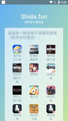 初次打开软件会跳转到选择游戏界面,在该界面选中您用于演奏的游戏乐器就可以了(后续可以在软件内更改)