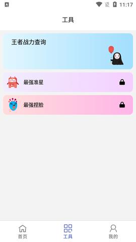 4、应用内包含特色小工具,查询王者荣耀战力查询、最强准星以及最强捏脸。