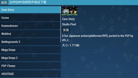 4、下载应用并不会为你下载游戏。请从你自己真正的PSP上烧录游戏至ISO或CSO文件,或者玩免费的自制游戏,网上均有下载。将它们放置于你的/PSP/GAME目录内即可进行游戏。