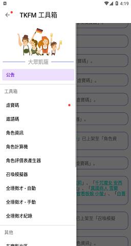 天下布魔TKFM工具箱App由第三方爱好者专为天下布魔开发的辅助应用软件,这里有着超多游戏相关的资讯信息内容给大家,大家能够在第一时间了解到最新消息,同时还提供了角色数据计算器、角色评价表生成器、虚宝码、邀请码等功能,为大家带来更加便捷的游戏体验。