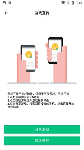 注意:游戏互传不消耗流量,适用于互传游戏,互换手机