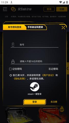 2、点中间的“開”,直接进入登录注册界面。然后用steam一键登录95skins开箱网。然后需要绑定手机号,这些都是常规操作了。