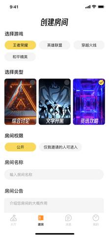 2.各种不同的游戏都会进行详细的划分,你可以快速进入对应的房间加入讨论;