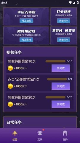 有奖换皮APP是可以让用户获取到更多游戏皮肤福利领取的手机软件,这里有丰富全面的皮肤素材都是可以直接去进行获取查看的,让用户通过完成各种不同的任务来领取皮肤,皮肤的种类全面丰富,任何时候的皮肤获取需求都可以随时满足,还有最新的皮肤都是可以预览使用哦。