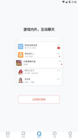 玩家在登录app之后,即可绑定自己的游戏角色,接下来系统就会根据玩家在游戏中的角色,为玩家实时推送游戏好友与自己的聊天信息。重要的信息,再也不用担心错过了!