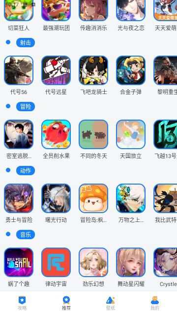 这款软件能够根据用户的喜好,为用户推荐各种好玩的游戏,不管是什么类型的游戏,用户都能够在这里找到,同时软件中还有大量的游戏攻略,用户都能够随意观看,各种攻略能够帮助用户快速掌握这款游戏,软件不需要用户注册登录,软件界面也十分的干净整洁。