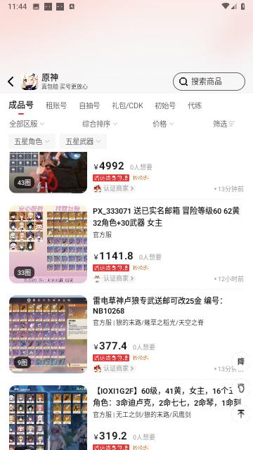 4、灵活的筛选、排序、搜索功能,让你轻松找到心仪的游戏账号。