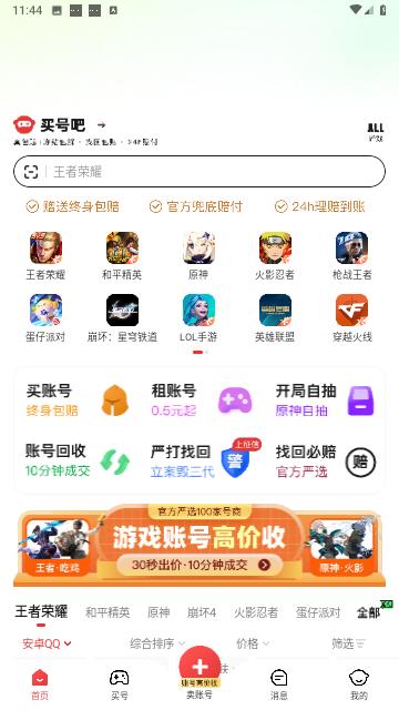 买号吧是一款十分好用的账号交易软件,这款软件里面有各种各样的游戏账号,玩家可以根据自己的需要进行够,没有任何的套路也没有中介费,买家与卖家直接线上交易,保证用户能够在第一时间购买到自己想要的东西,另外软件界面非常的干净整洁,用户能够快速找到自己想要的游戏账号。