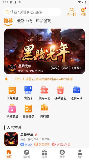 2.每日推荐功能,为用户推荐热门游戏,让玩家不再迷茫;