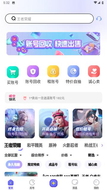 爱号是一款非常好用的账号交易平台,这款软件有超级多的游戏大神为用户提供服务,可以让你的游戏账号得到大神的代练,可以在平台对账号中的道具进行购买,让你获得更多的限量道具,用户在平台上做买卖交易,通过平台所获得的收益,提现速度非常快。
