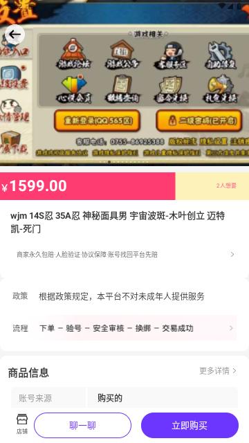 3.是一个游戏交易平台,用户可以在线上进行游戏中的装备、买卖号码交易。